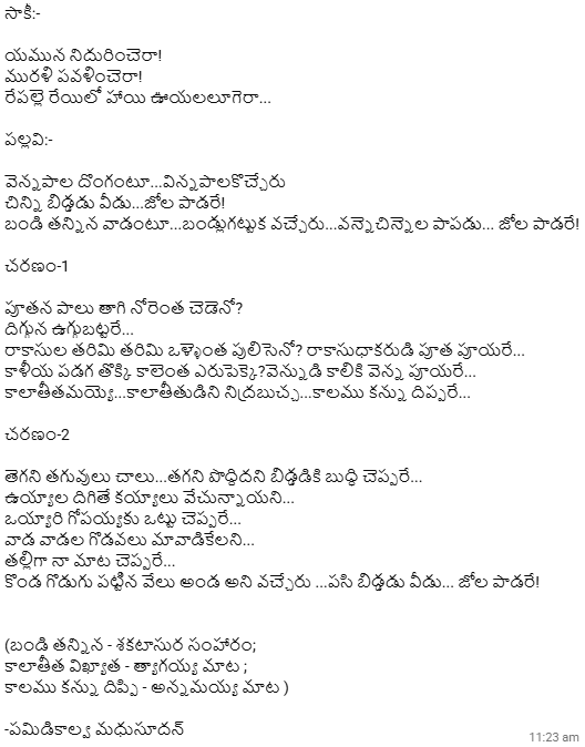 | Ni madhi | Dr.Acharya Tirumala | K.Ramachary |  |